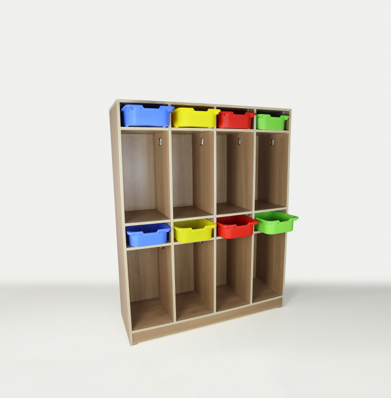 وحدة تعليق للحقائب عدد 16 طفل من الخشب mdf17 ملم غطى بطبقة من الميلامين وجميع الاحرف مغطاه بقشاط pvc يشمل على علبة